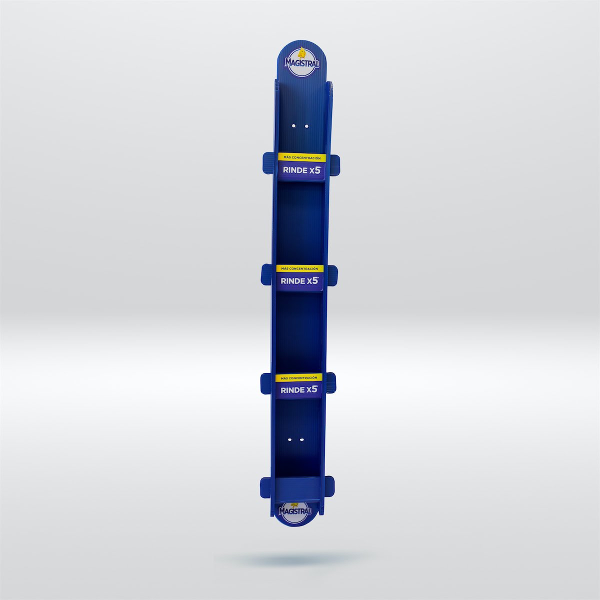 Tiras gráficas lineales utilizadas para identificar categorías, comunicar precios, promociones o mensajes de marca a lo largo de la góndola. Ordenan visualmente, mejoran la navegación y refuerzan la presencia del producto.