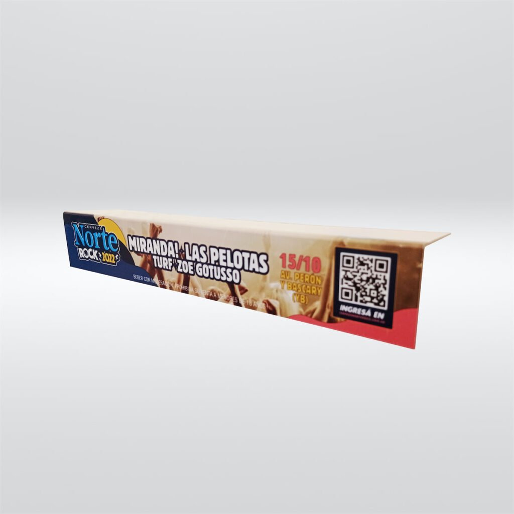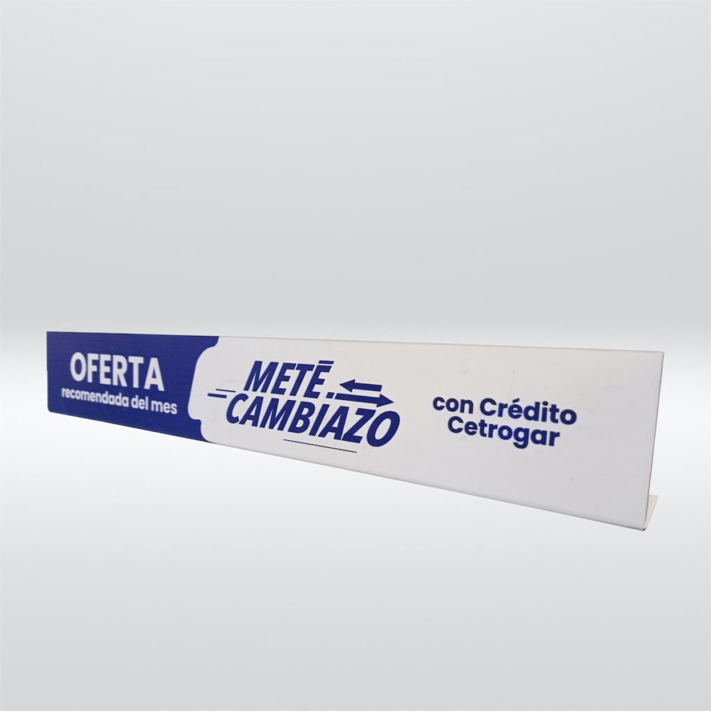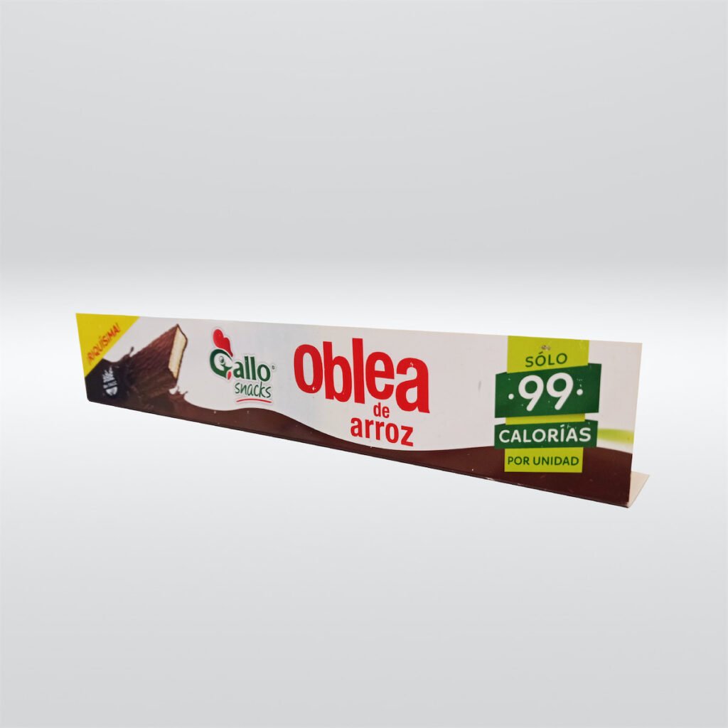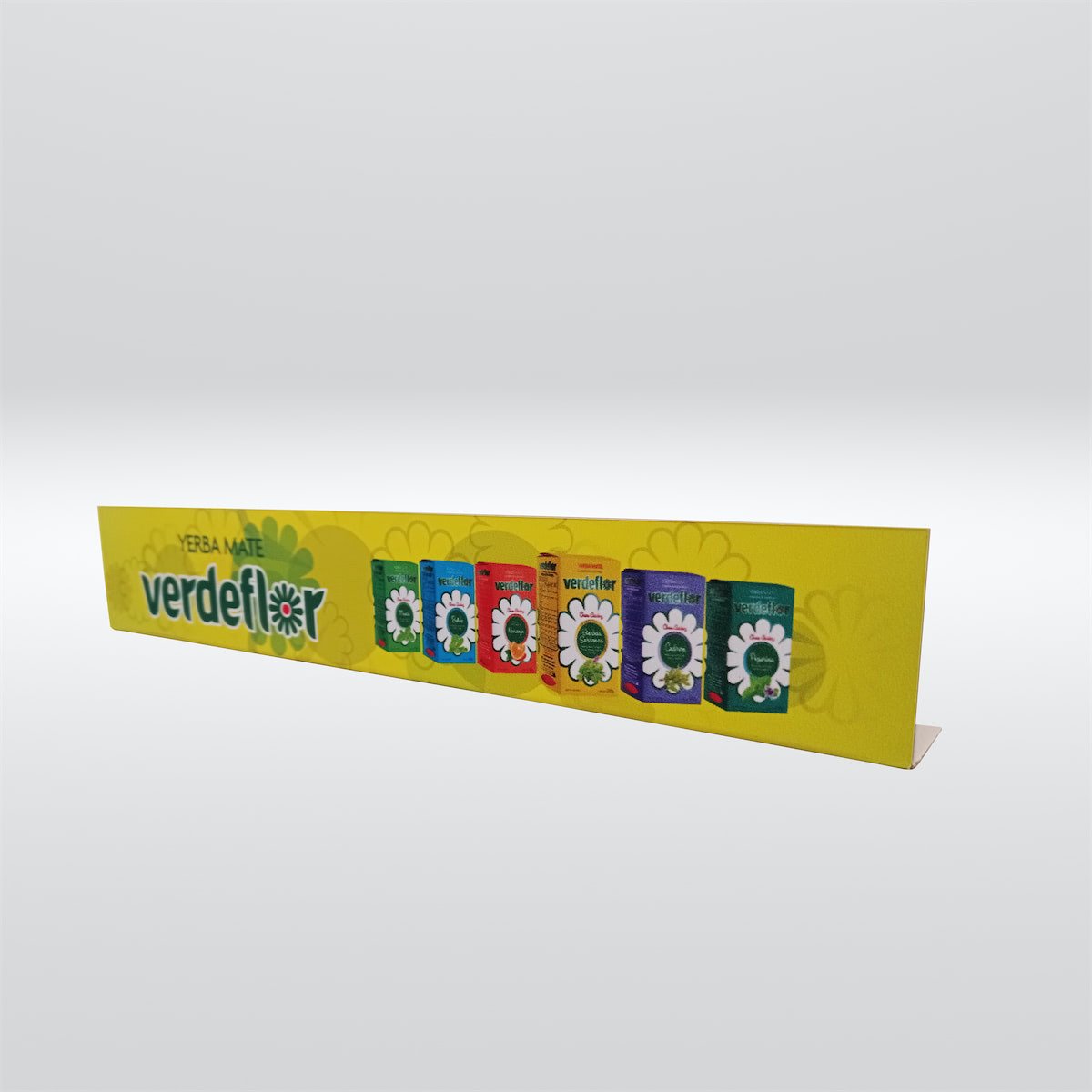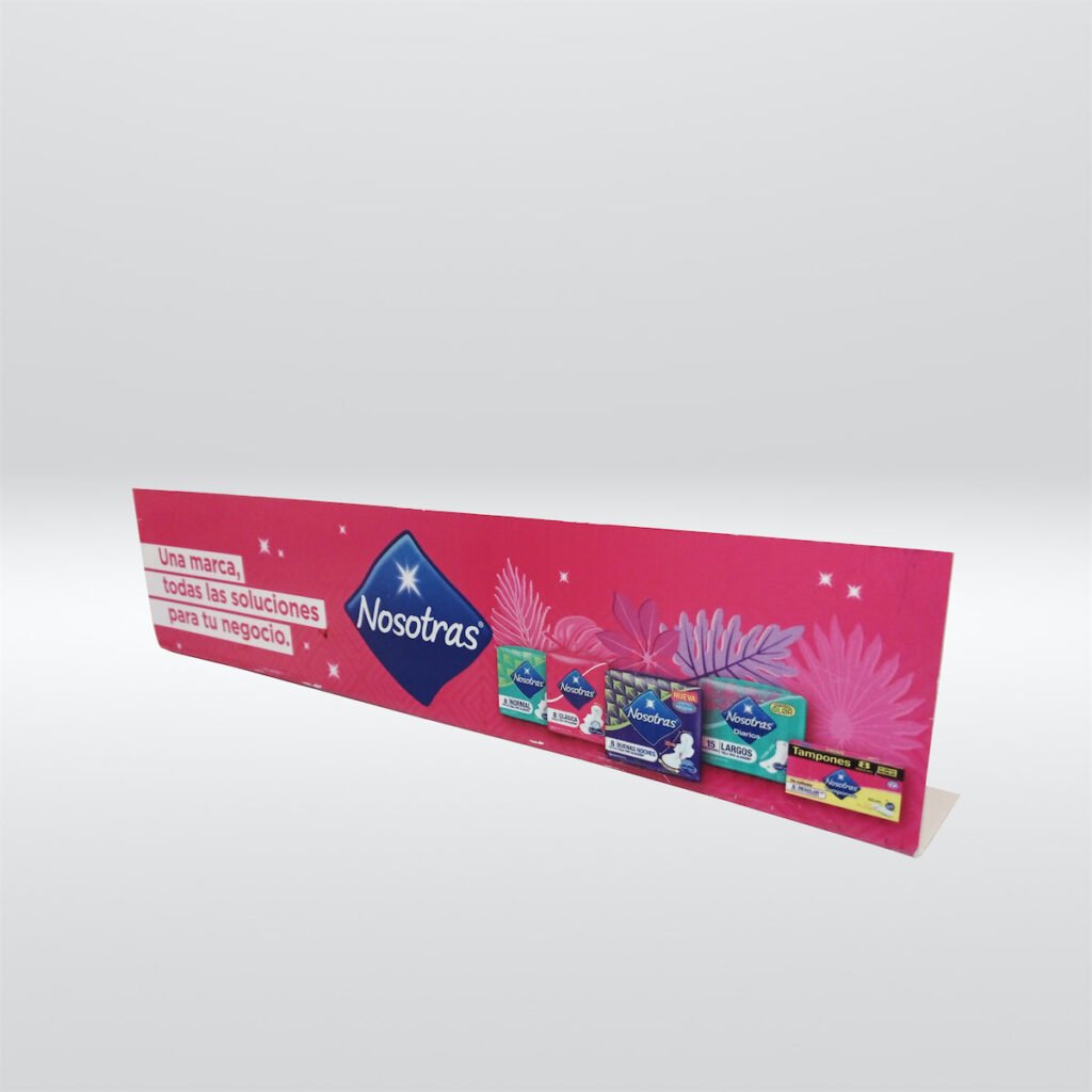 Tiras gráficas lineales utilizadas para identificar categorías, comunicar precios, promociones o mensajes de marca a lo largo de la góndola. Ordenan visualmente, mejoran la navegación y refuerzan la presencia del producto.