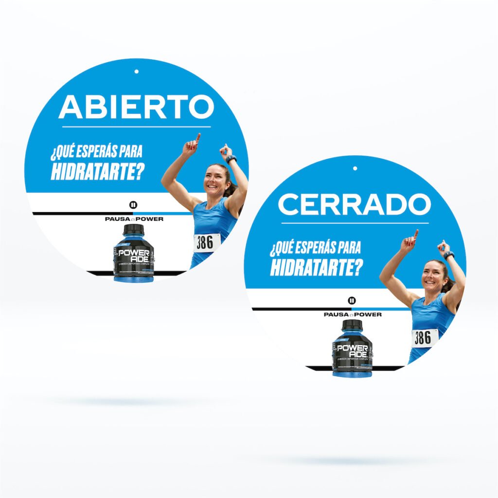 Señalización suspendida para identificar zonas o transmitir información sobre productos, ofertas o marcas.