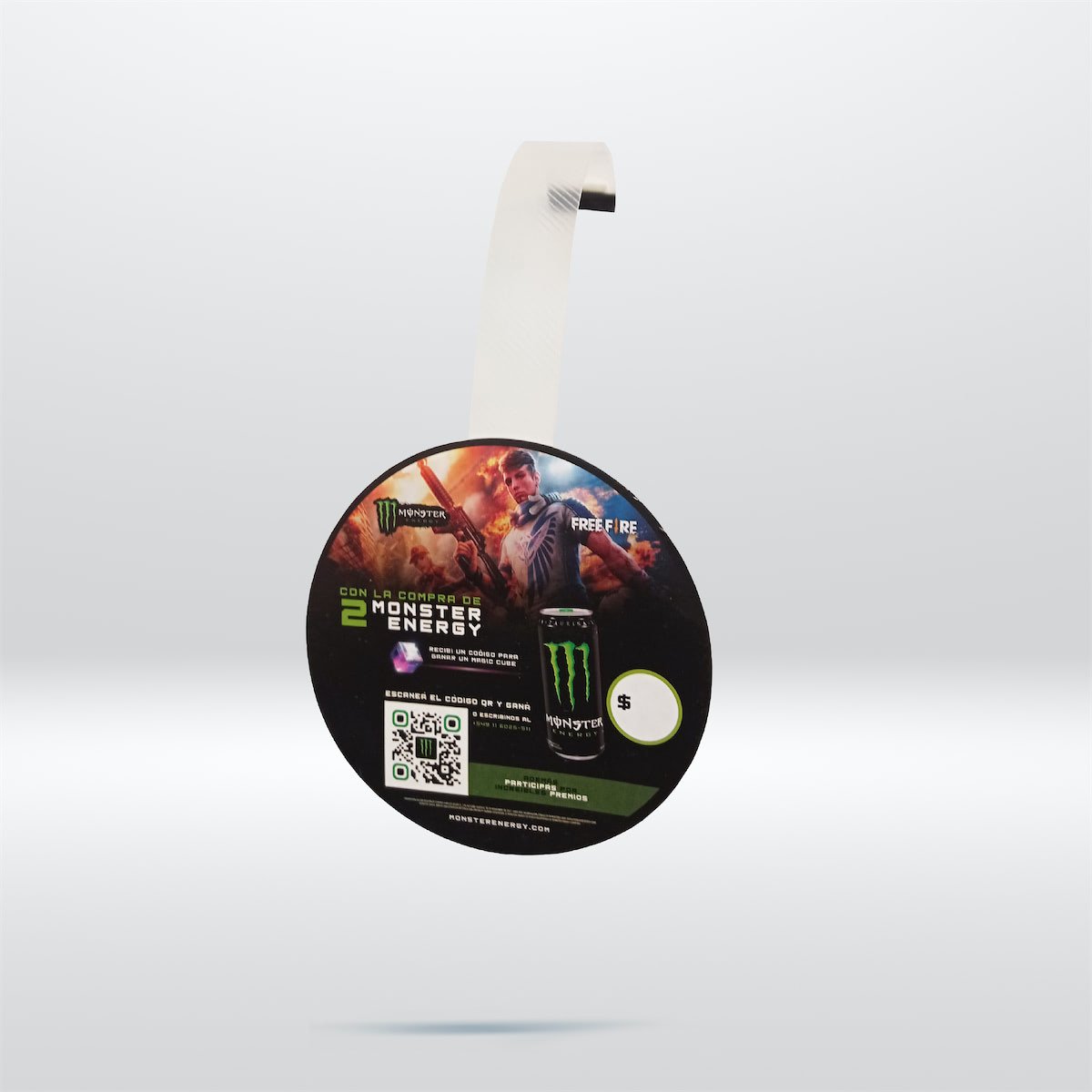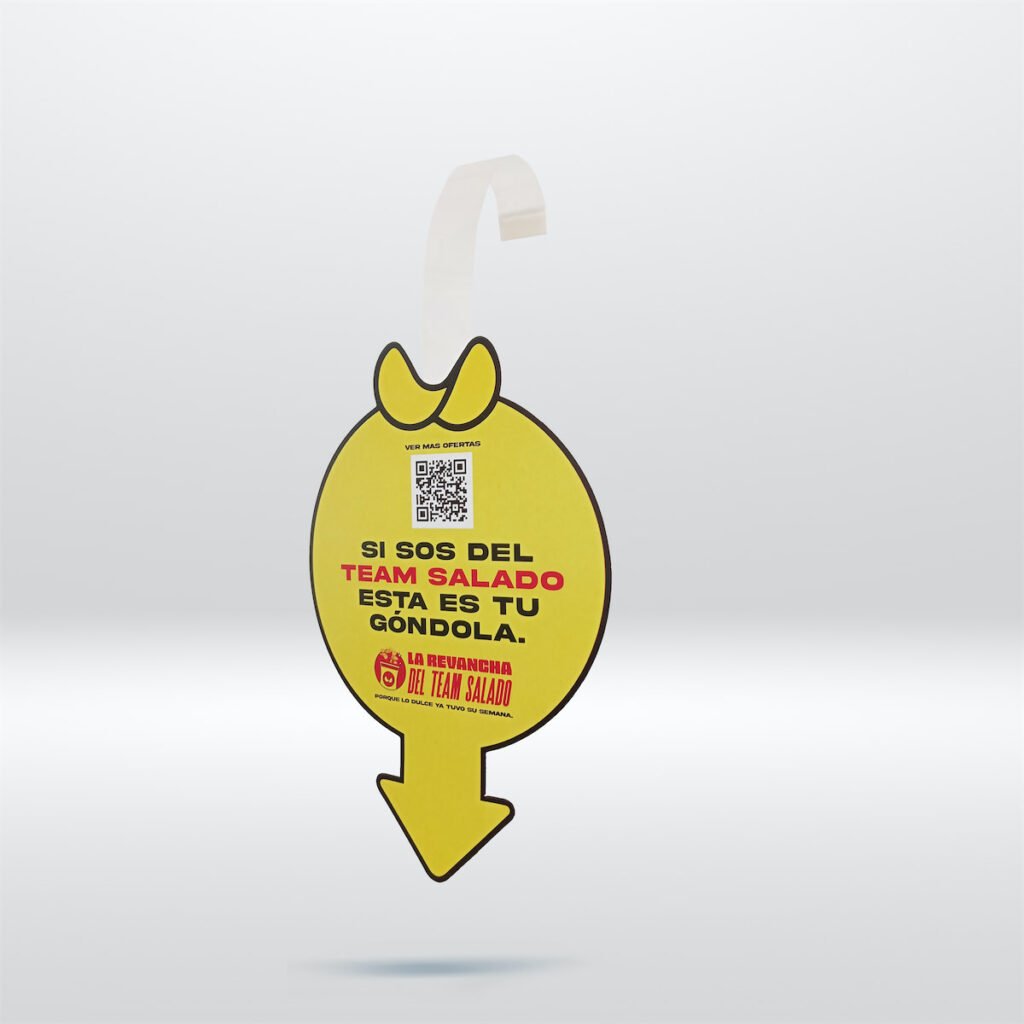 Pieza móvil o flexible diseñada para llamar la atención mediante movimiento, destacando productos o promociones específicas dentro de la góndola. Interrumpe el campo visual y genera impacto inmediato.