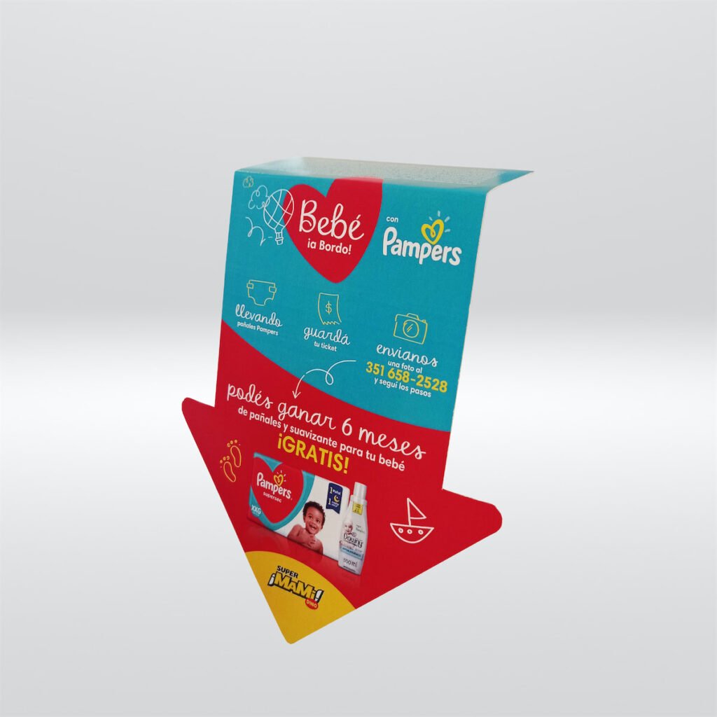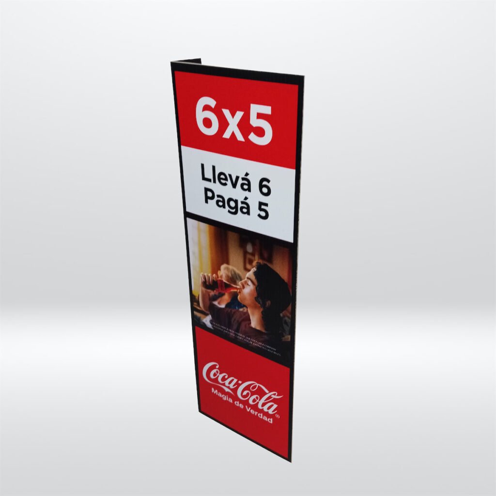 Elementos gráficos que sobresalen de la línea de góndola para romper la monotonía visual y dirigir la atención hacia una marca o producto. Funcionan como marcadores laterales.